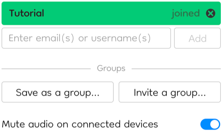 If you and your fellow musicians are in the same room, only one device should output audio to avoid echoes. Enable Mute audio on connected devices in the rehearsal room settings.
